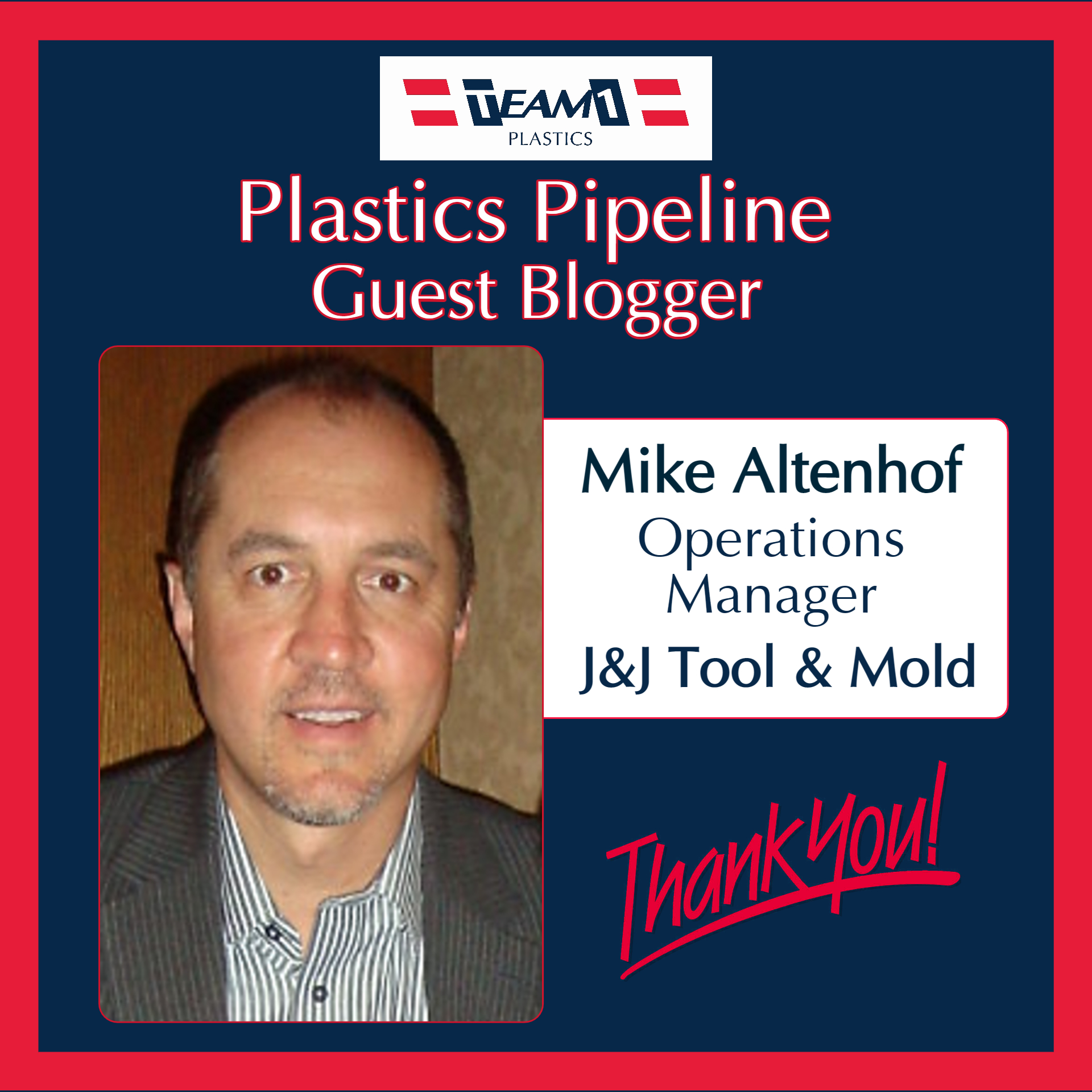 Team 1 Plastics is pleased to periodically feature Guest Bloggers to share their perspectives of the plastics industry on Plastics Pipeline. We thank today’s Guest Blogger, Mike Altenhof of J&J Tool & Mold Ltd.