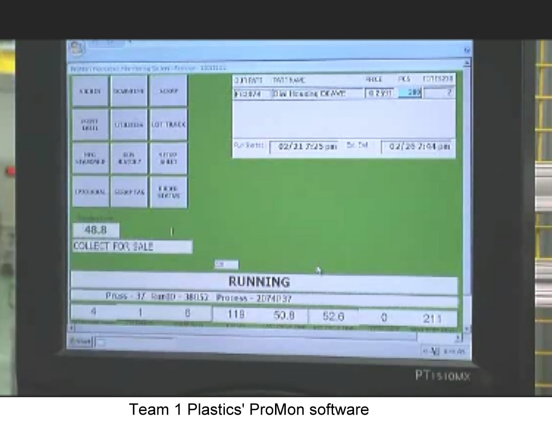 Team 1 Plastics, a plastic injection molding company for the automotive industry, developed its own production monitoring system, called ProMon, that allows a paperless production and quality system on the manufacturing floor. Networked thin-client computers, located at each of the presses, deliver work instructions and quality check points. The touch screens allow the machine operators to interact with them. The operators can quickly and easily record any quality checks they made on the part. And, they do have the information they need to make a good decision at 2 AM.