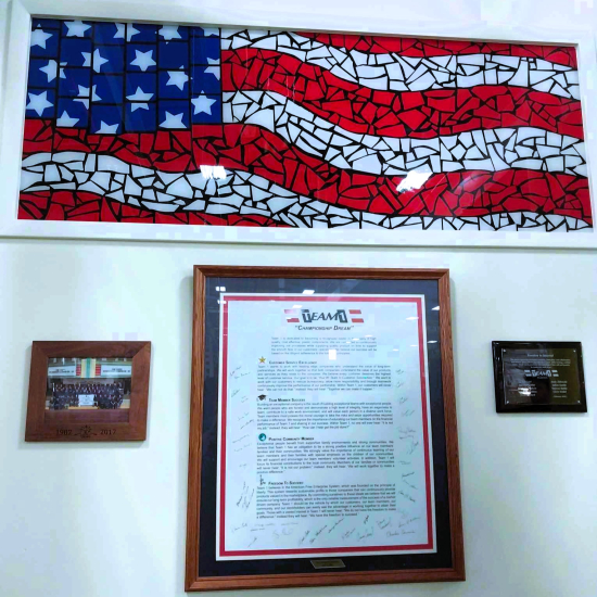 Nine Team 1 Plastics’ employees spent 18 months crafting a striking mosaic mural, transforming vision into reality with precision, dedication, and teamwork.