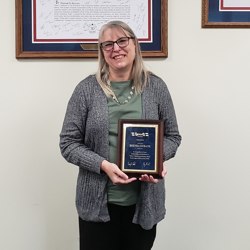 Team 1 Plastics Recognizes Brenda Eubank for Five Years of Outstanding Marketing Efforts