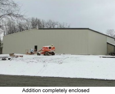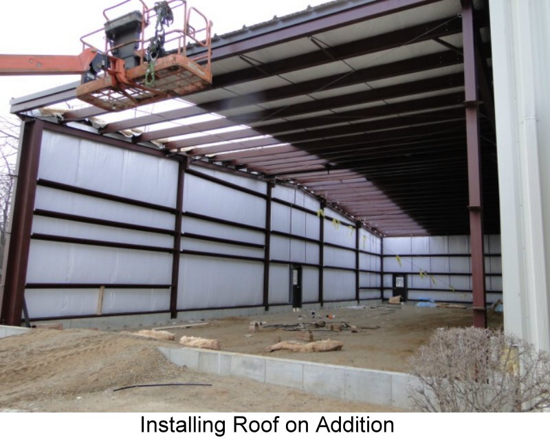 The builders have completed the steel framework. And, the walls and roof have been added, enclosing the addition.