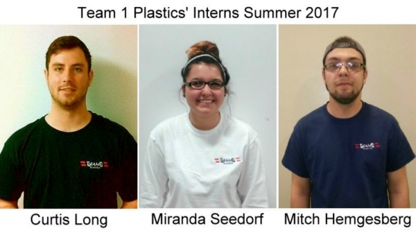 Since 2011, Team 1 Plastics, a plastic injection molding company for the transportation industry, has offered summer internships for college students. During the summer of 2017, Team 1 was pleased to have three college interns from Ferris State University (FSU): Curtis Long, Miranda Seedorf, and Mitch Hemgesberg.
