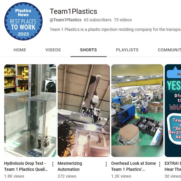 Since November 2022, Team 1 Plastics has created a variety of YouTube Shorts: showcasing its world-class operations with fresh, relevant content.