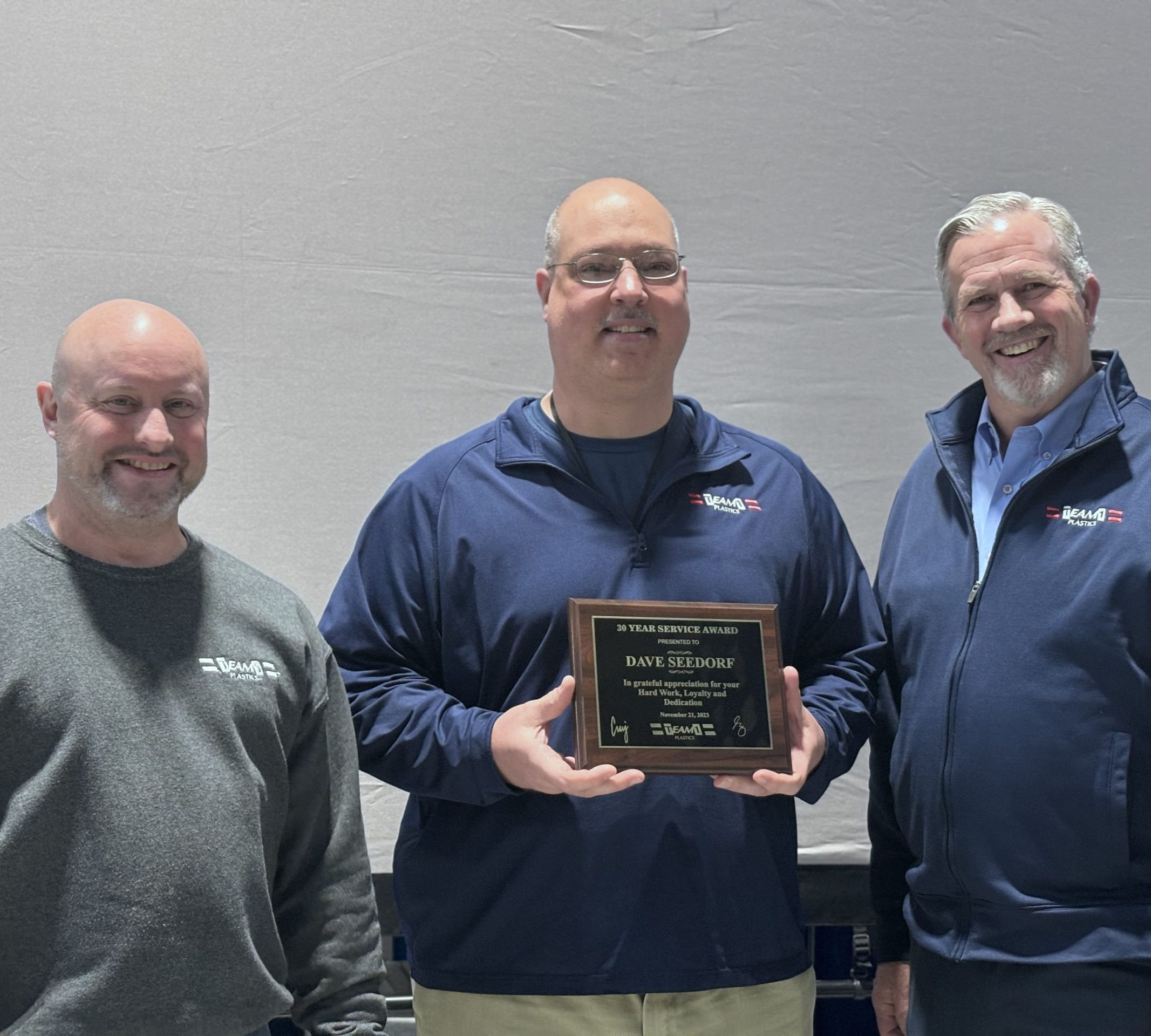During the Annual Open Book Meeting in November, the company recognized five Team Member service anniversaries. Being only the second Team Member to reach 30 years at Team 1 (besides Owners Craig and Gary, of course), Dave Seedorf earned that achievement in March 2023. During the Open Book Meeting, Dave was presented with a 30-Year Service Award plaque to honor his time with the company.