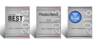 Each winning company was also featured in the March 21, 2016, edition of Plastics News. From the article featuring Team 1 Plastics, entitled, For Team 1 Plastics, ‘It’s all about having a great team,’ “Team 1 Plastics Inc. is batting a thousand. The automotive injection molder is 3 for 3, earning a position on Plastics News’ Best Places to Work roster each year since 2014.”
