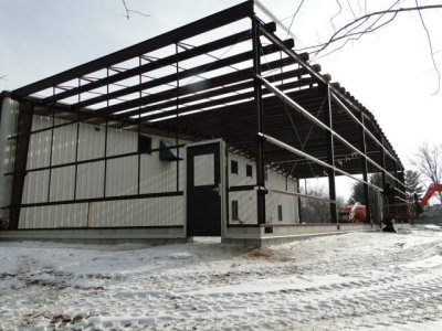 The steel has been delivered, and the erecting of the steel frame is underway at Team 1 Plastics, a plastic injection molding company specializing in automotive parts. The company, located in Albion, Michigan, is in the process of expanding both its building and production capabilities.