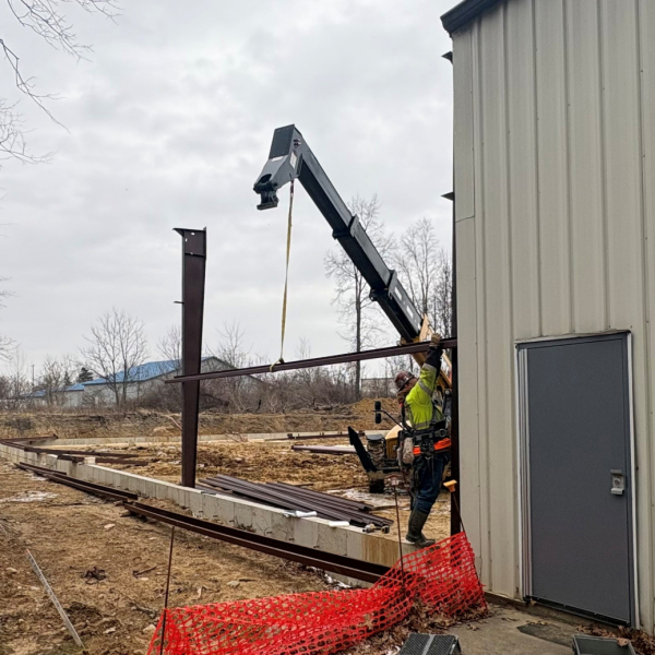 Once steel erection began, the pace of progress accelerated quickly. Within just nine days of placing the first beam, the majority of the structural framework was already in place – including key access points such as door openings. Less than three weeks after the initial steel placement on March 18, the project had advanced even further, with roofing installation underway. This rapid transformation is a testament to the efficiency and expertise of DK Steel Erectors, Inc. of Parma, Michigan, whose work has brought the structure together with impressive speed and precision.